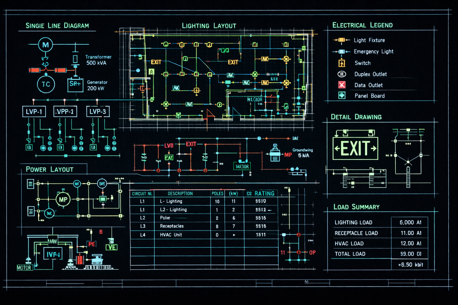 We offer wiring diagrams, circuit layouts, panel schedules, load calculations, and full electrical system plans for home, business, and industrial projects.